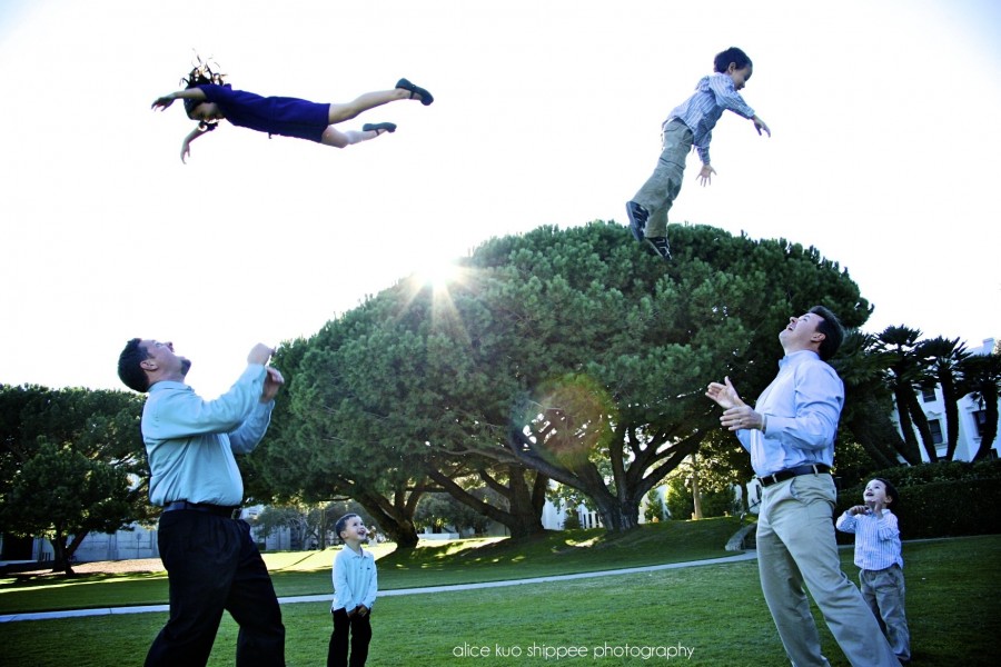 Bryen & Michael Bell are hilarious. They always, always crack me up when we do pictures, because they are so much fun with their kids, & if you could see the eye-rolls they get from their wives! In fact, I wanted to title this post “ding-dongs,” & I think they would have loved it. It’s so great when dads really get into being photographed with their families, & these two dads bring on the goofiness & the one-ups-man-ship (check out the pic of them tossing their kids into the air–I think they were competing to see whose flew higher!). I’ve known Alithea & Bryen for six years now, & a couple years ago, I also had the pleasure of photographing Ann & Michael–& everyone together, including the four kids: Mikayla & Connor, & Bradley & Jettrin. How wonderful that those little cousins will grow up together, playing & wrestling & driving each other bonkers. Here’s to brotherhood & sisters-in-law & cousins & families getting together…